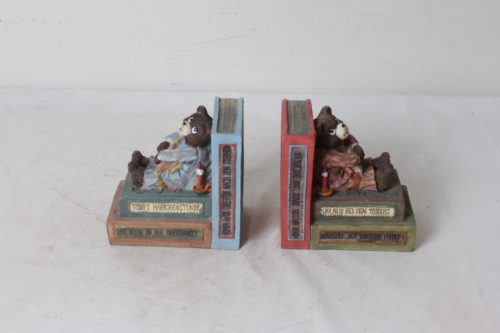 Serre-livres vintage « Oursons » en polyrésine ; peints à la main.