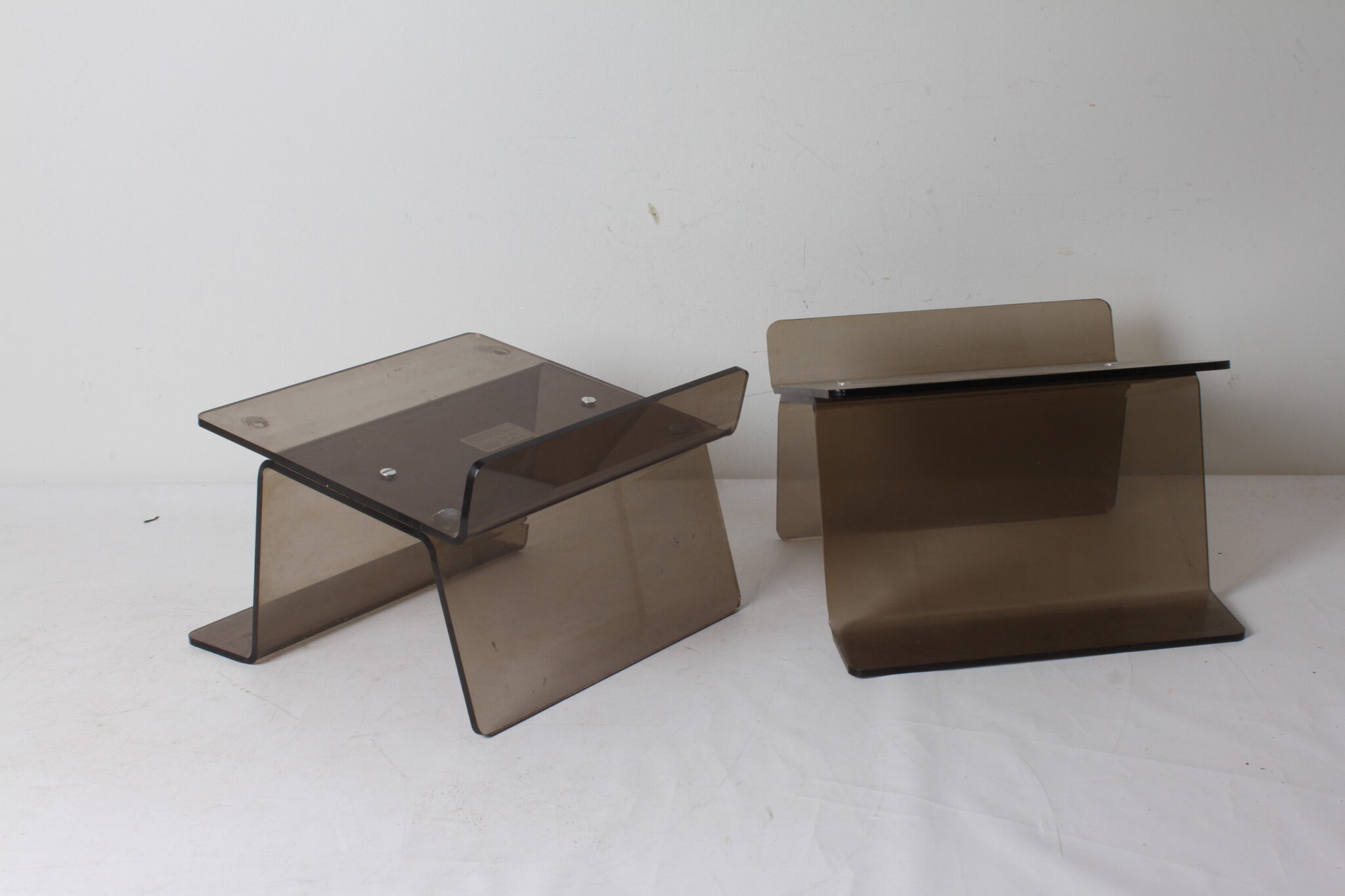 Supports d’enceintes vintage en plexiglas fumé de la marque Sound Support.