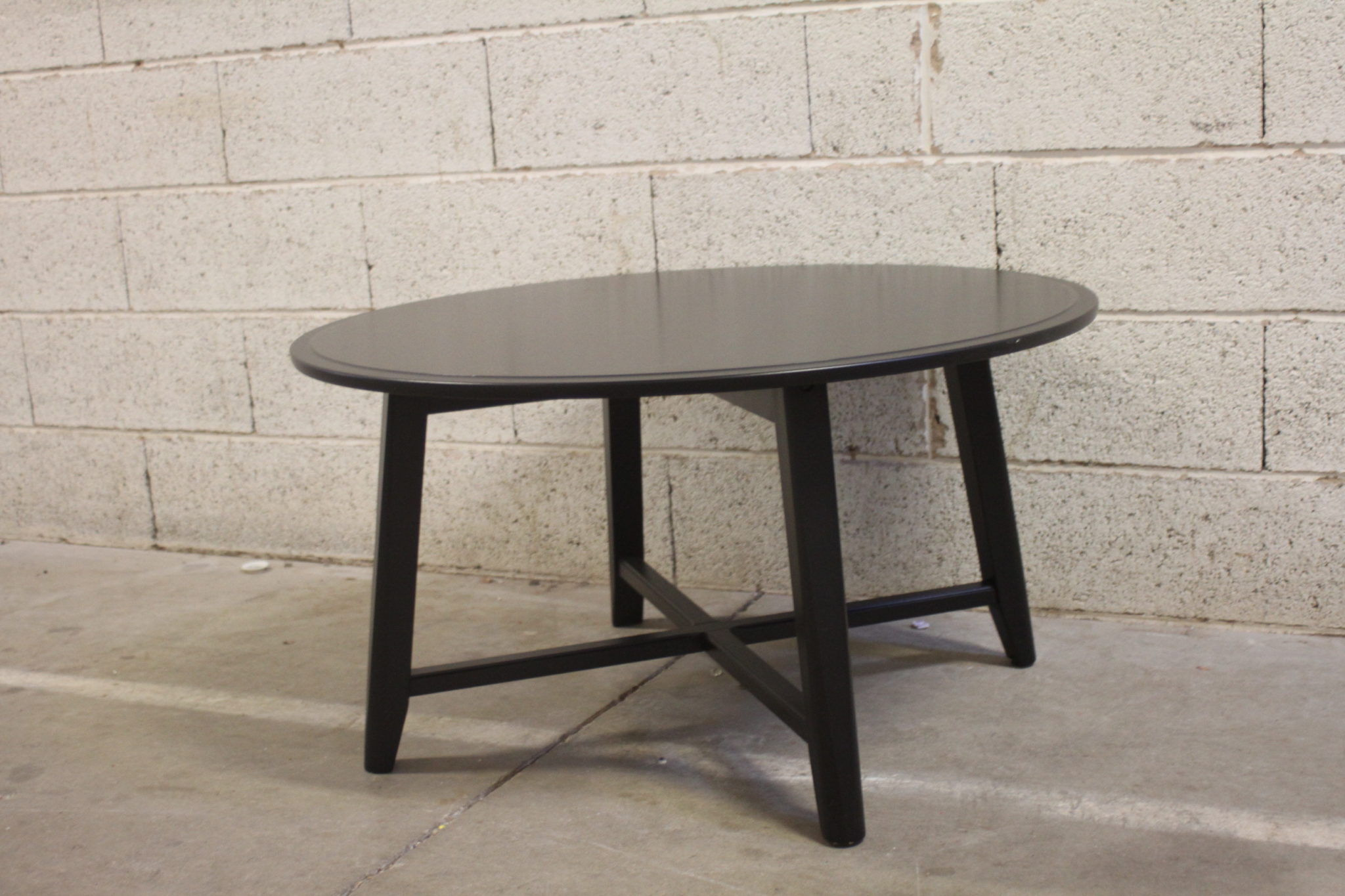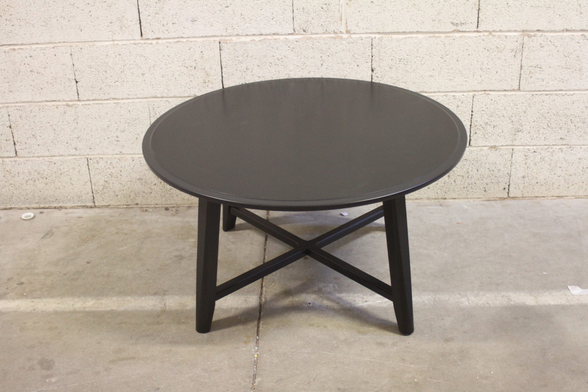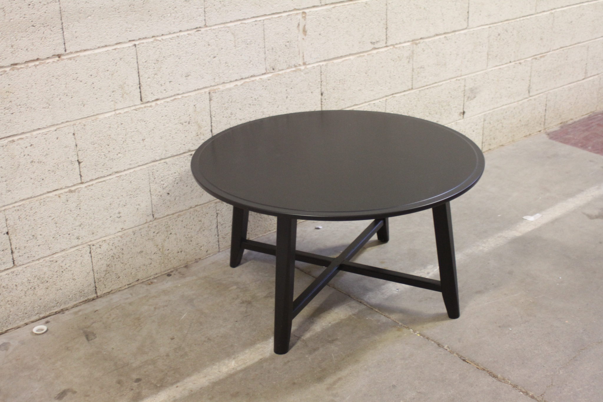 Table basse ronde en bois noir de chez Ikea, modèle Kragsta.