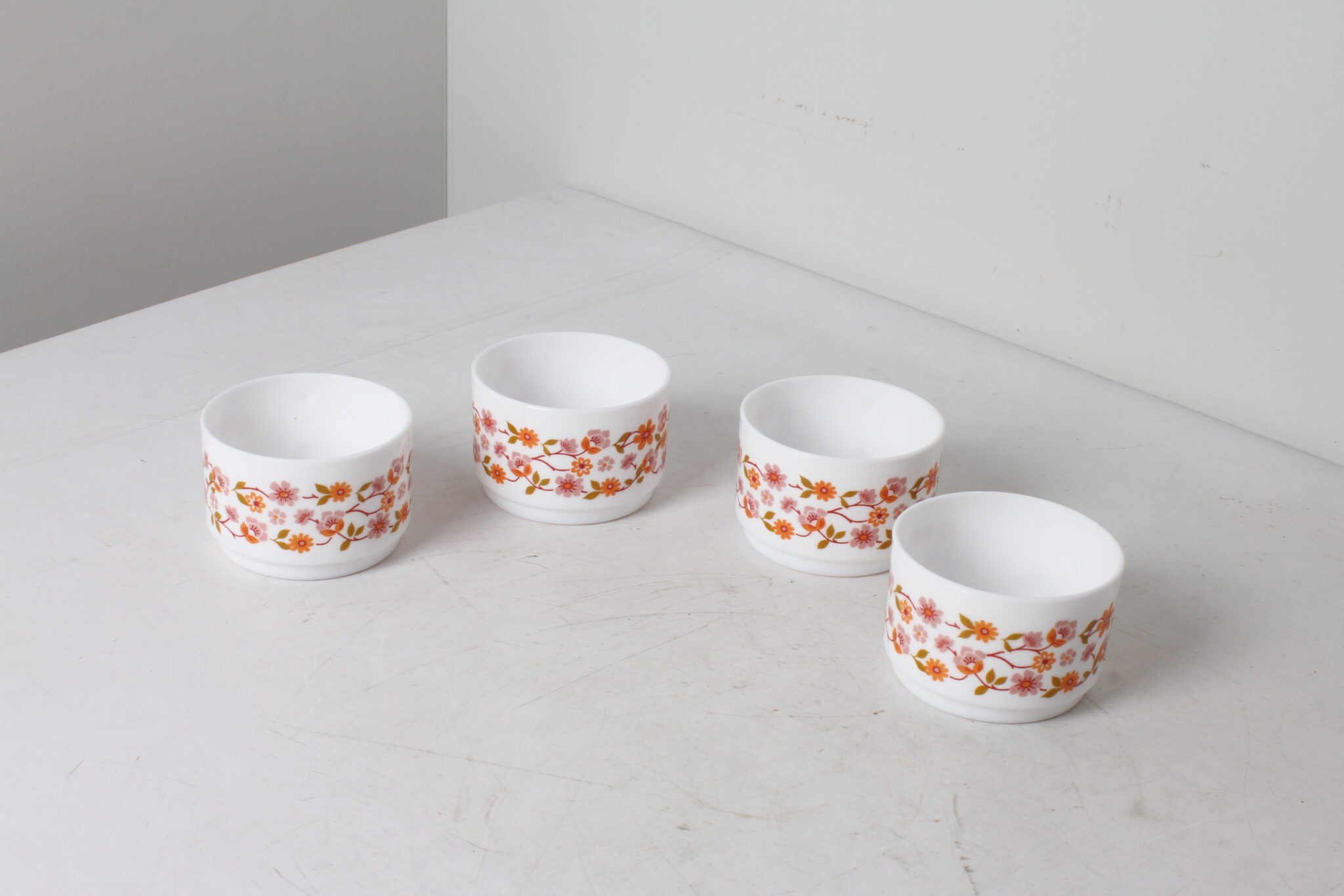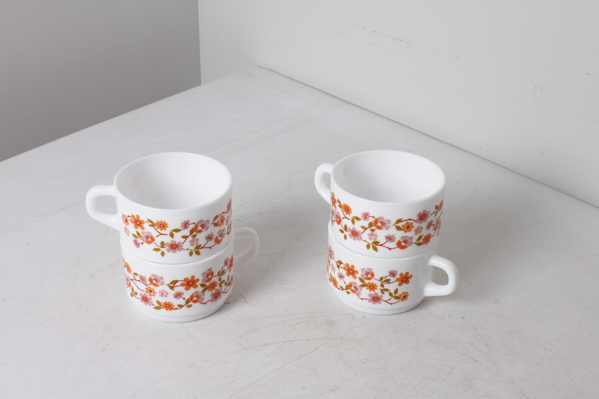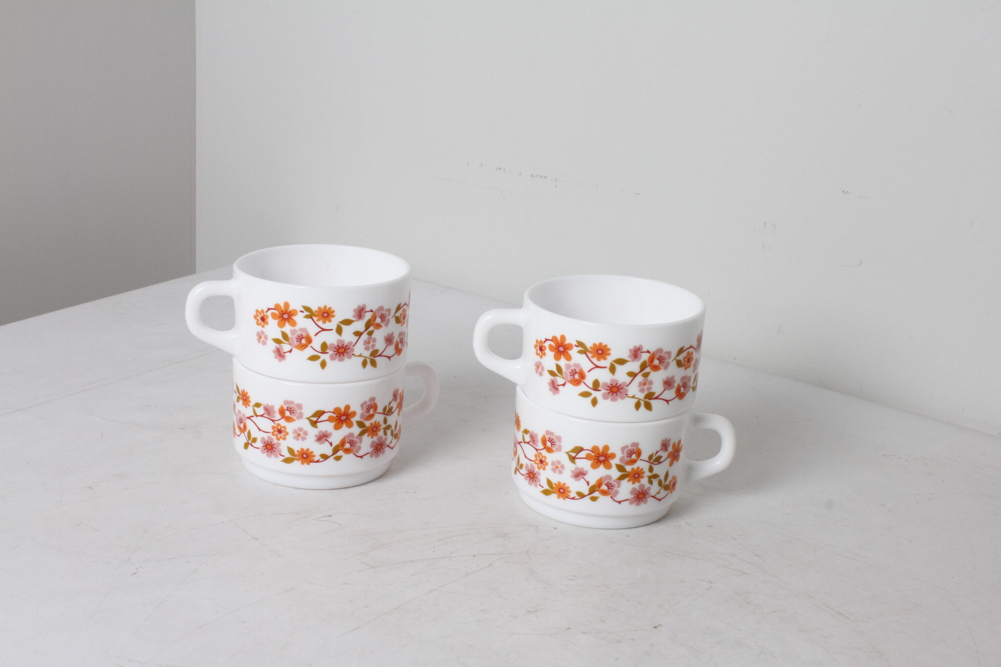 Série de 4 belles tasses à café Arcopal France, décor Scania.