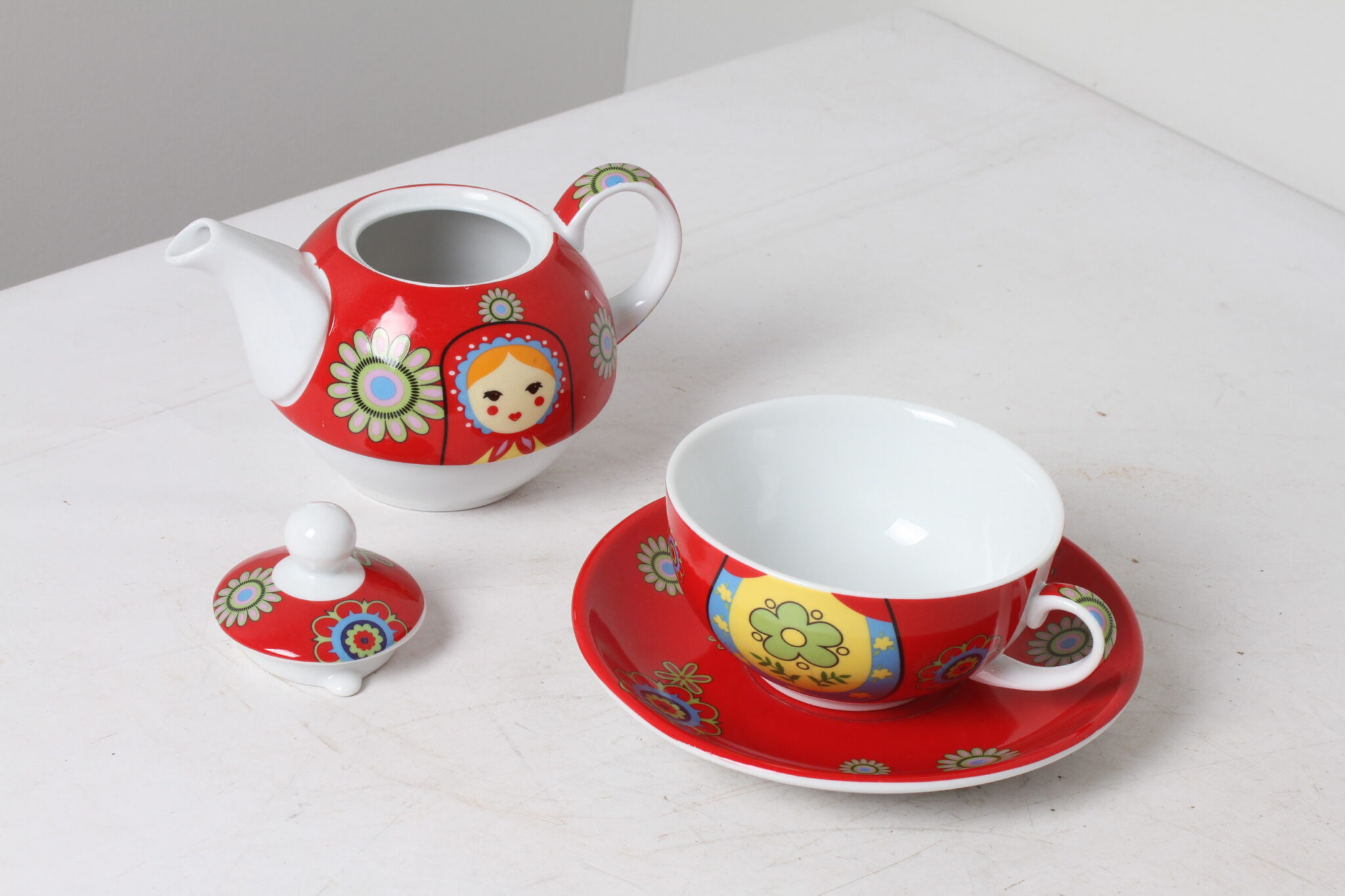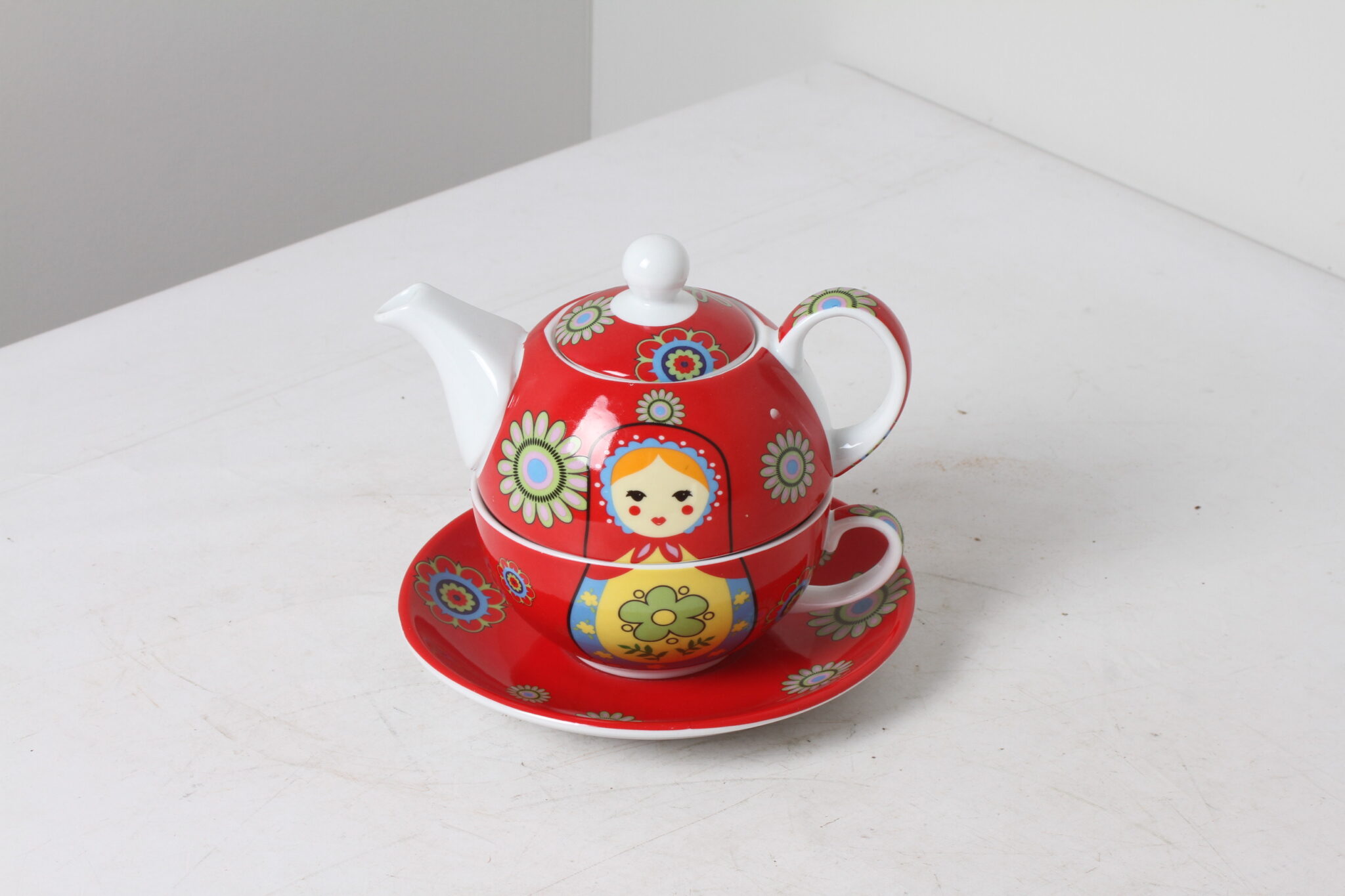 Théière solitaire en céramique à décor poupée russe – Matriochka.