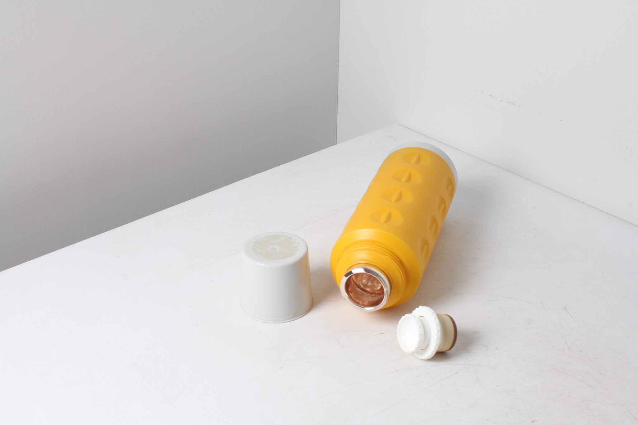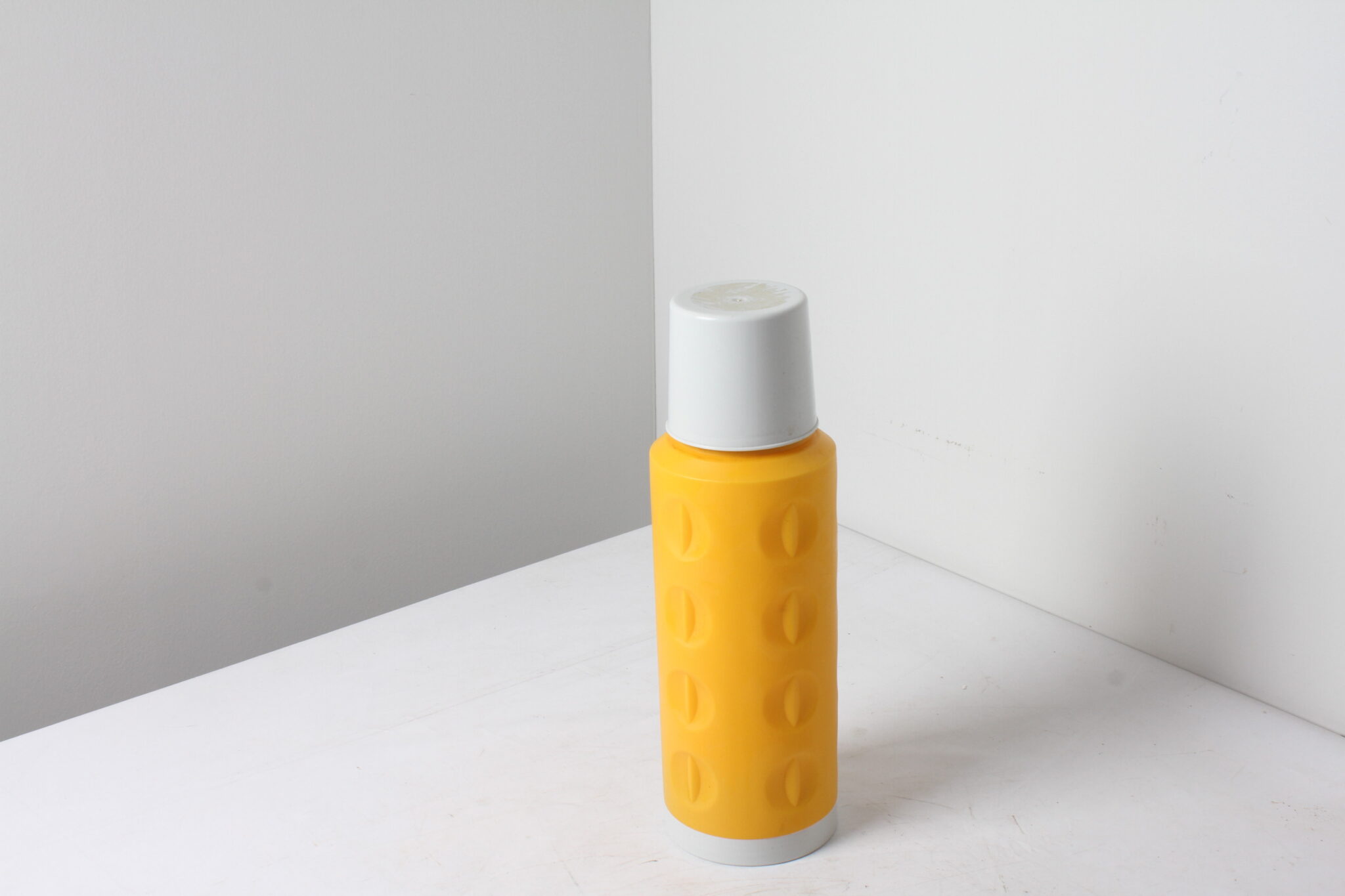 Thermos en plastique jaune d’une contenance de 1/2 litre.