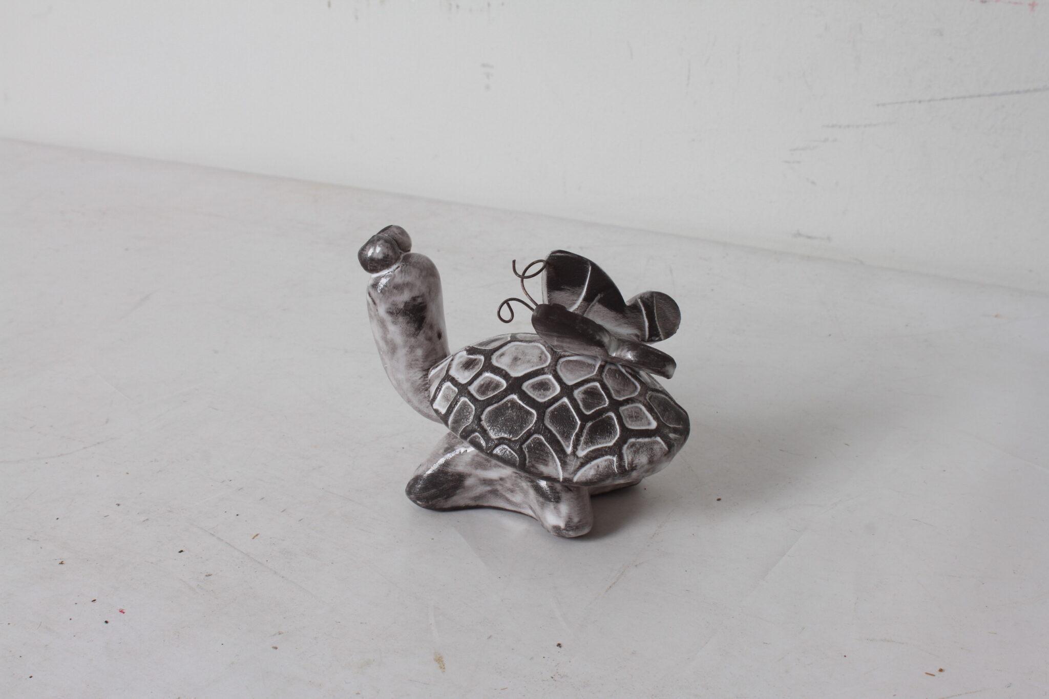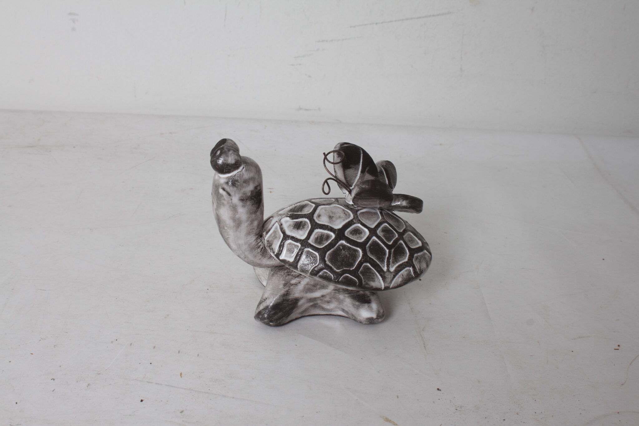 Petite déco sympa en céramique vernissé, tortue avec un papillon sur le dos.