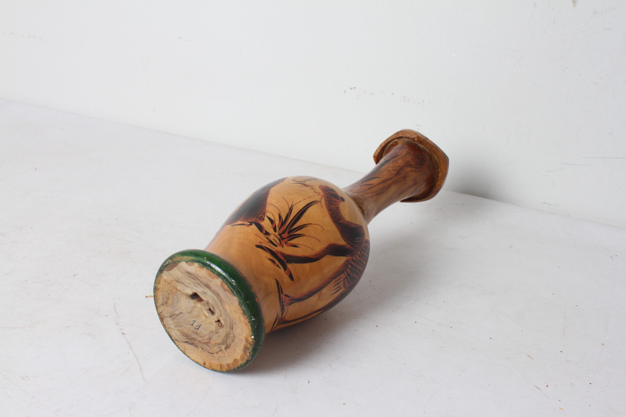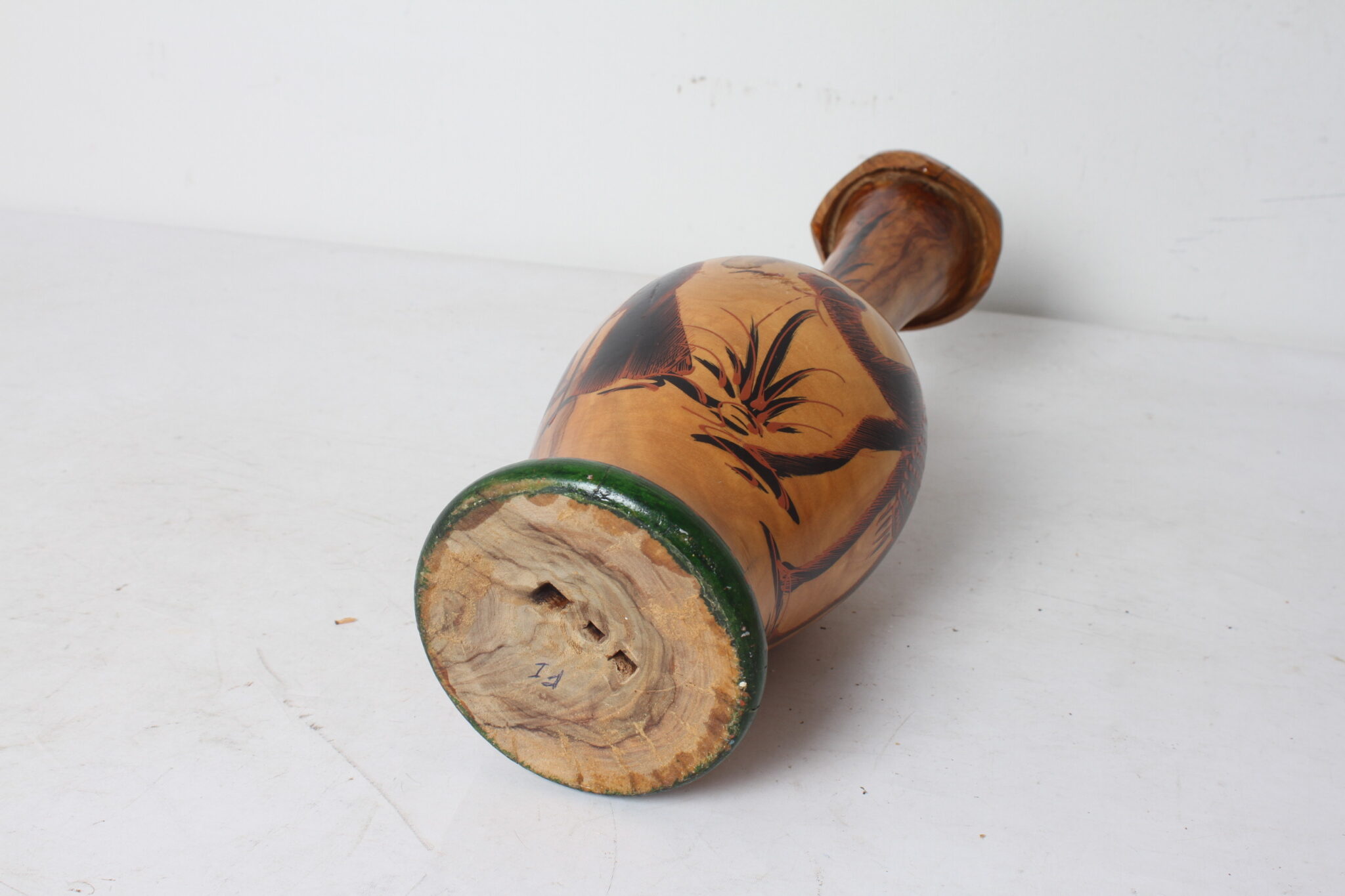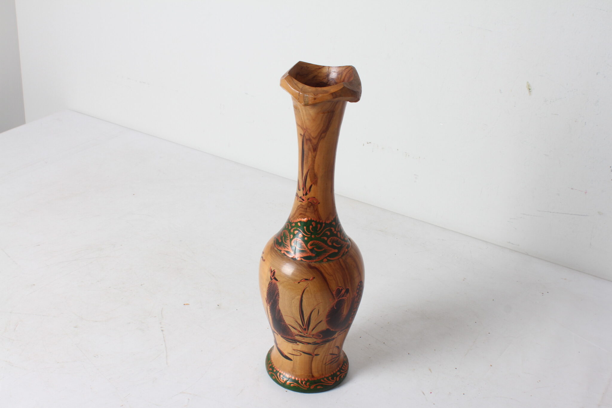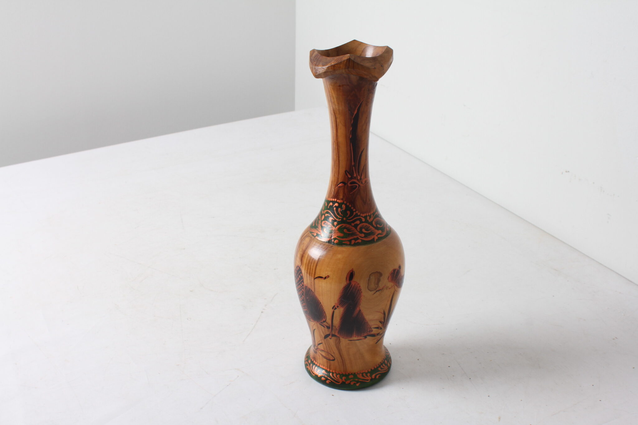 Vase artisanal en bois d’olivier.