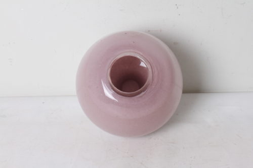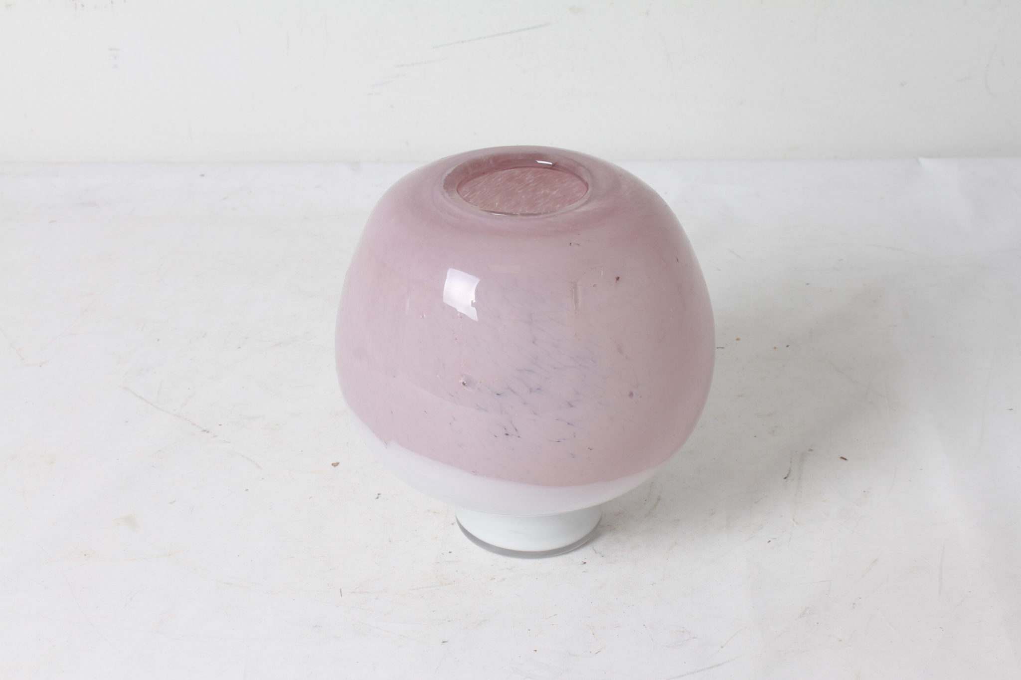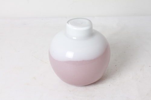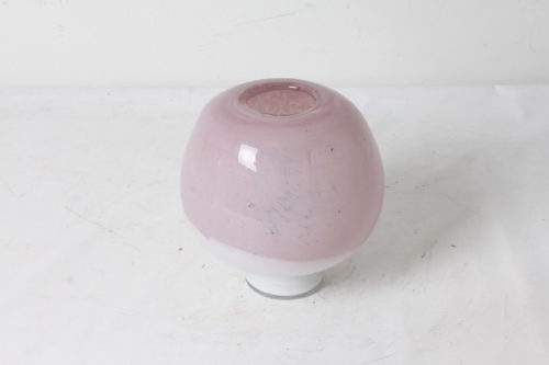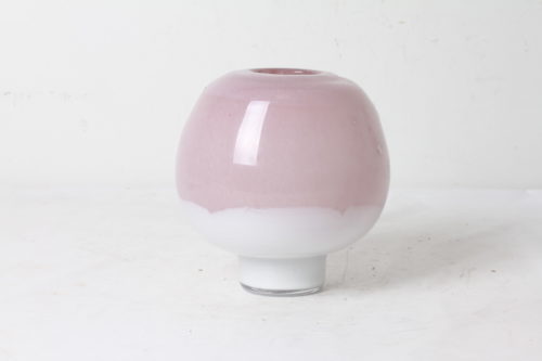 Vase boule design et élégant en verre rose et blanc.