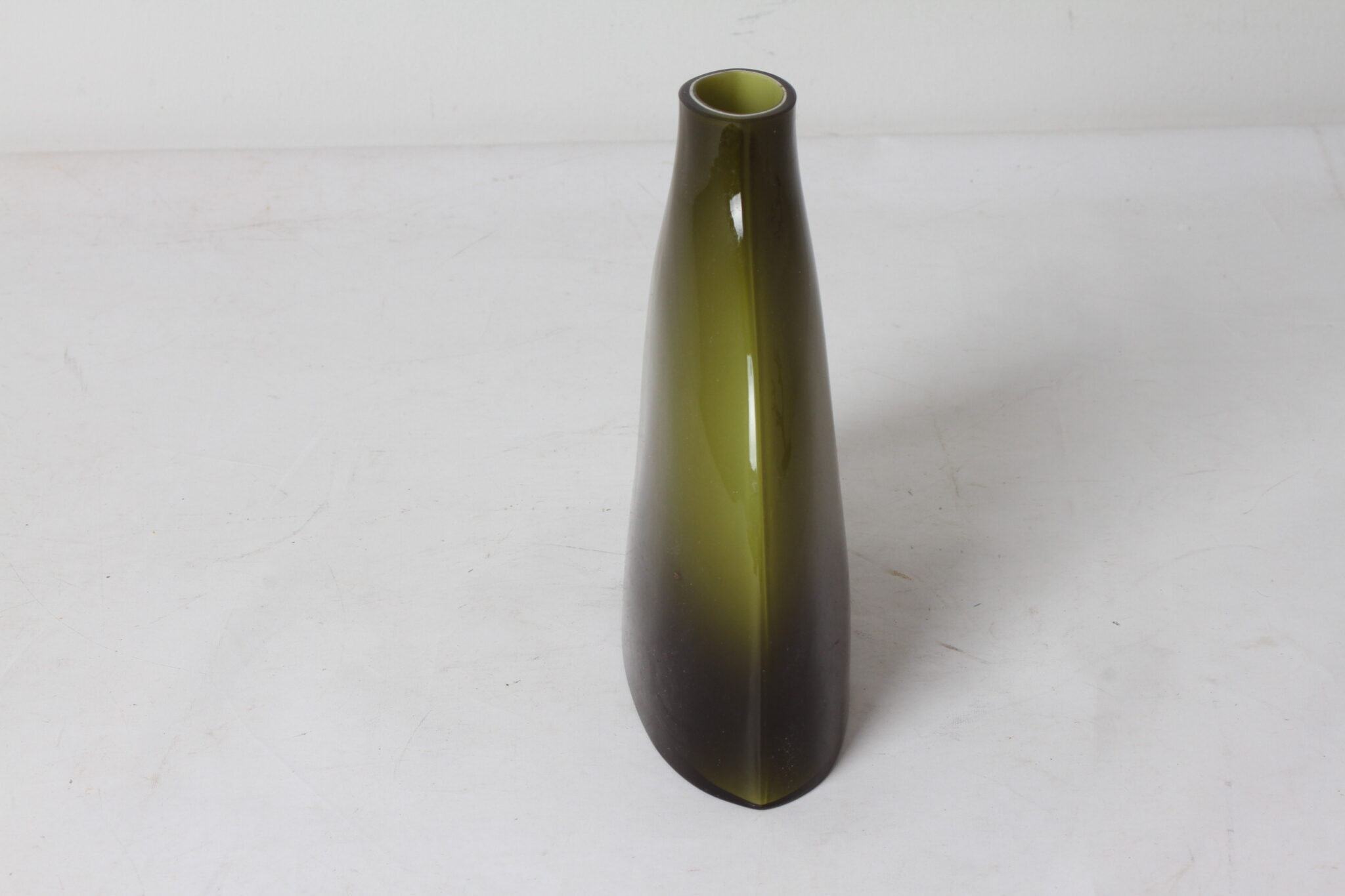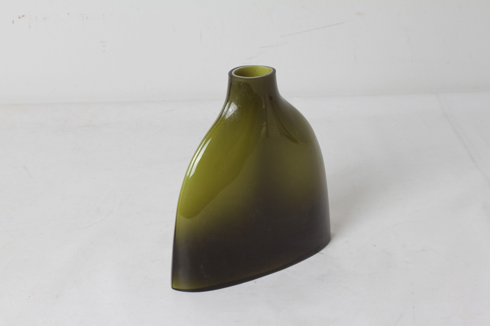 Vase design contemporain en verre ert dégradé.