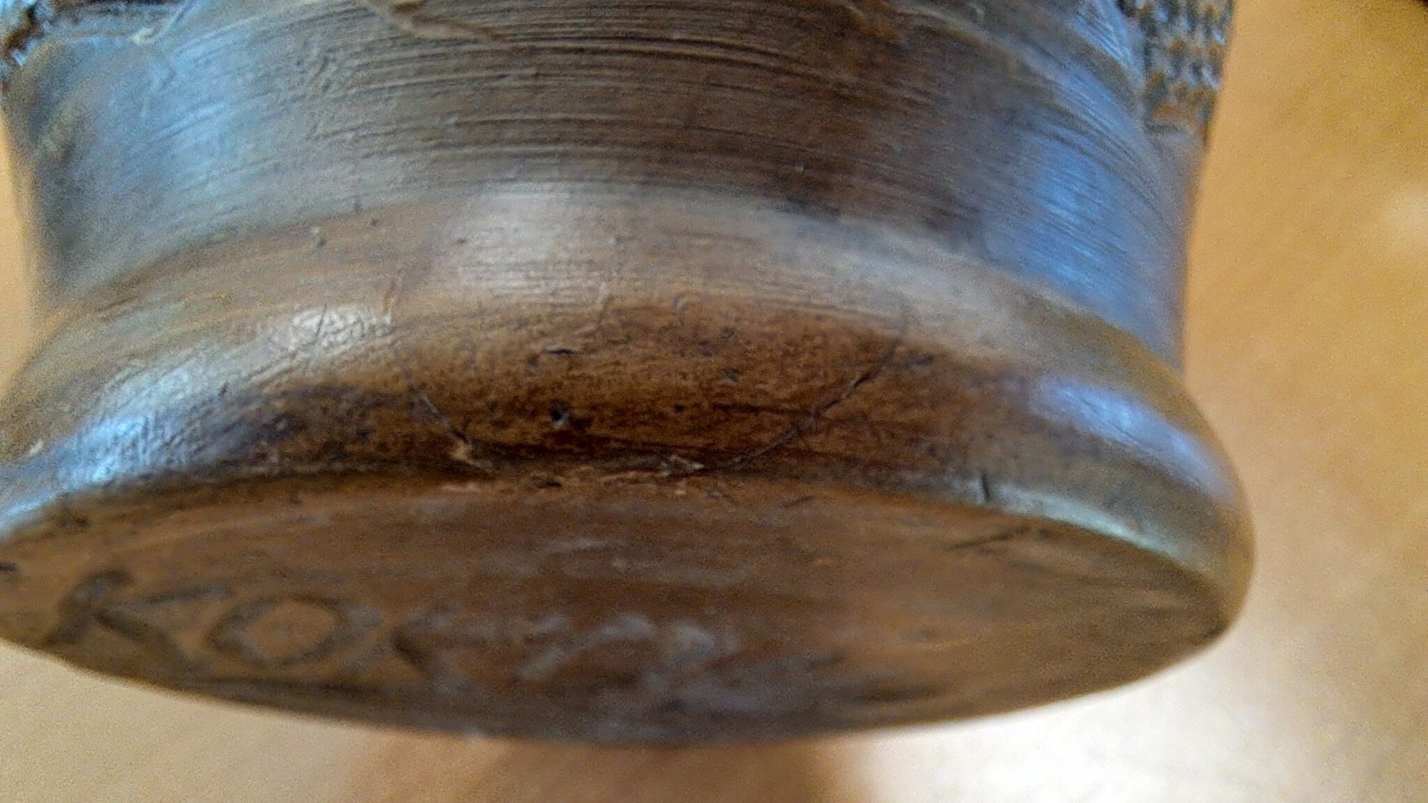 Produit qui nécessite un nettoyage et dont 1 morceau a été recollé sur la base.