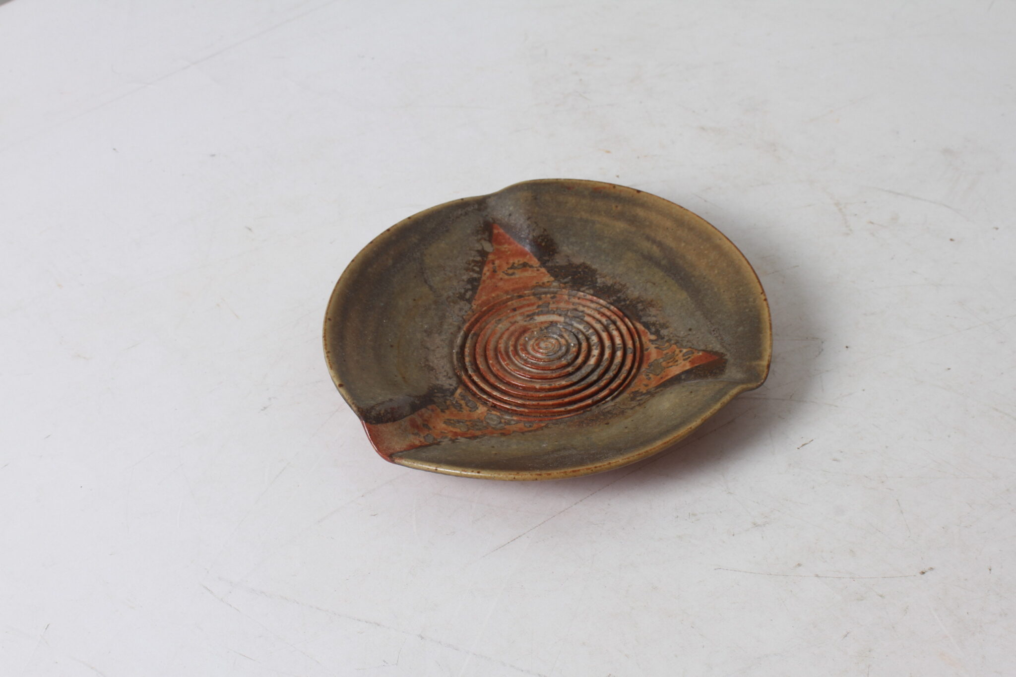 Vide poche original en céramique à décor spirale, signé.